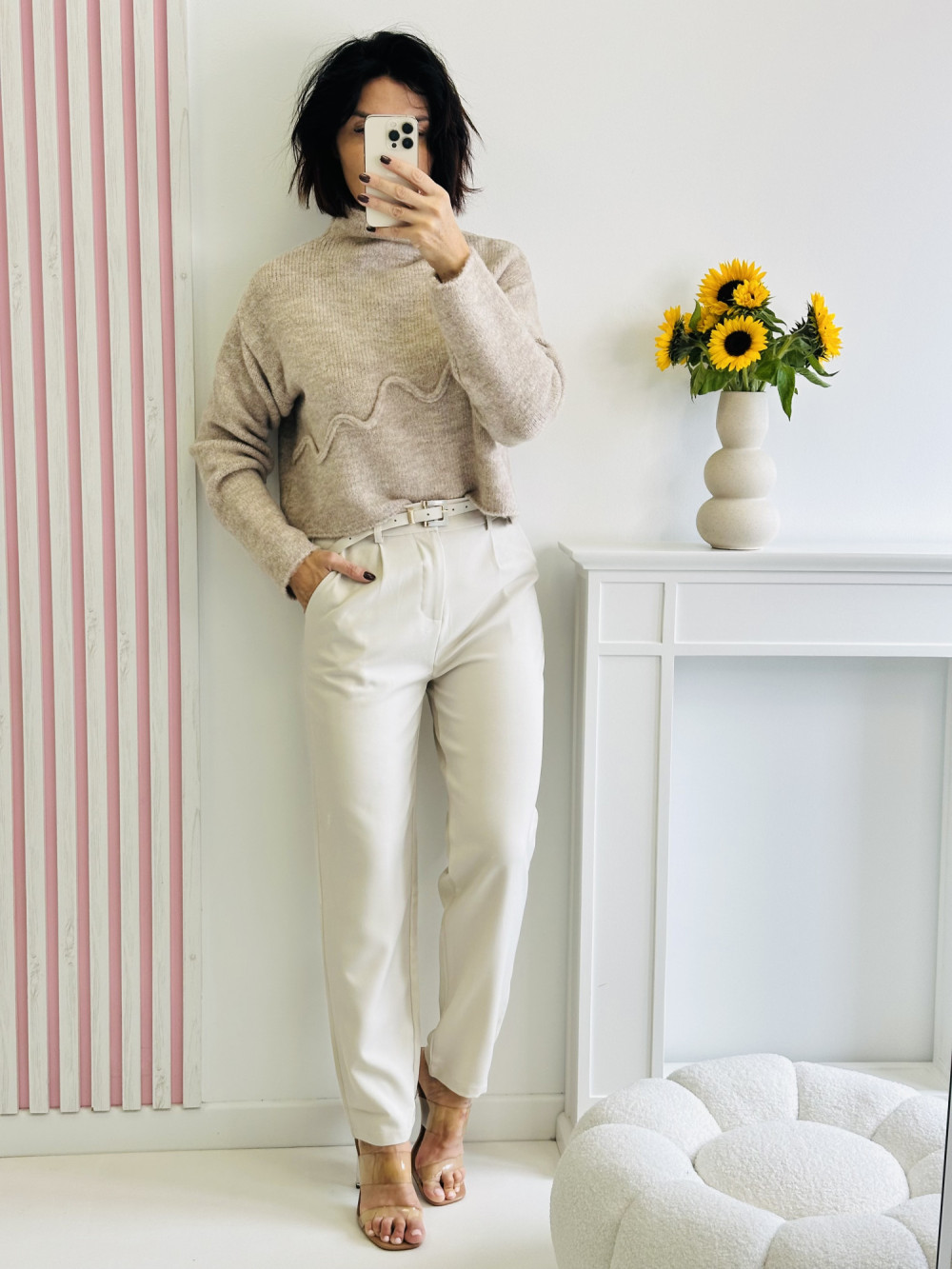Sweter oversize z półgolfem to idealne połączenie wygody i stylu. Luźny krój zapewnia swobodę ruchów i modny, nonszalancki wygląd, a półgolf dodaje mu elegancji i ciepła. Długie rękawy sprawiają, że to doskonały wybór na chłodniejsze dni – świetnie prezentuje się zarówno z jeansami, jak i spódnicą.