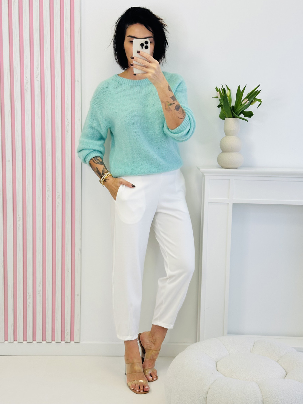 Klasyczny sweter z długim rękawem to uniwersalny element garderoby, który łączy w sobie wygodę i elegancję. Wykonany z miękkiego, przyjemnego w dotyku materiału, zapewnia komfort noszenia przez cały dzień. Doskonale sprawdzi się zarówno w codziennych stylizacjach, jak i w bardziej eleganckich zestawieniach.