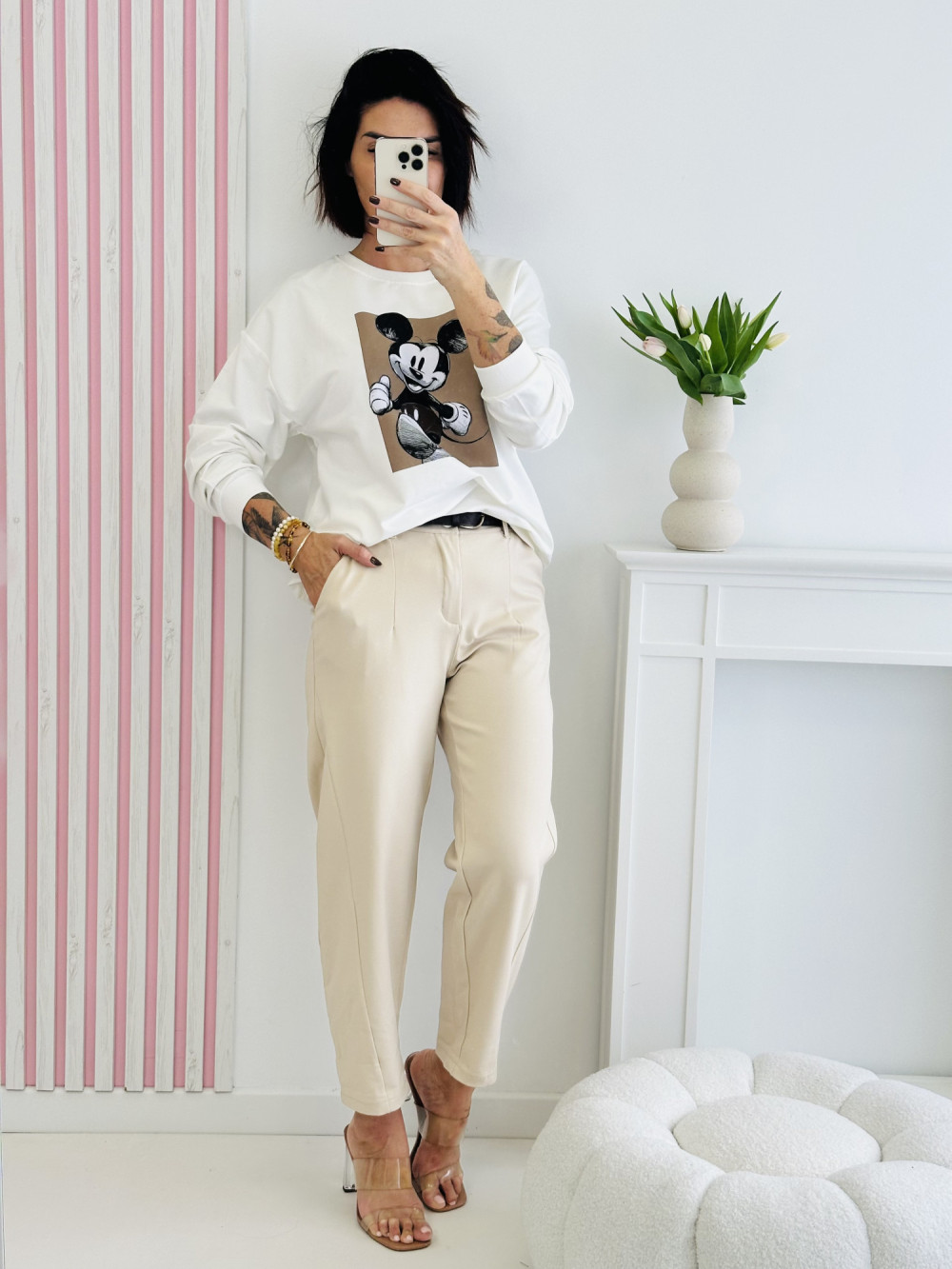 Kremowa bluza z długim rękawem to wygodna i stylowa propozycja na co dzień. Z przodu zdobi ją delikatna aplikacja, która dodaje całości subtelnego uroku i oryginalnego charakteru. Miękki, przyjemny w dotyku materiał zapewnia komfort noszenia, tworząc modną i przytulną stylizację.
