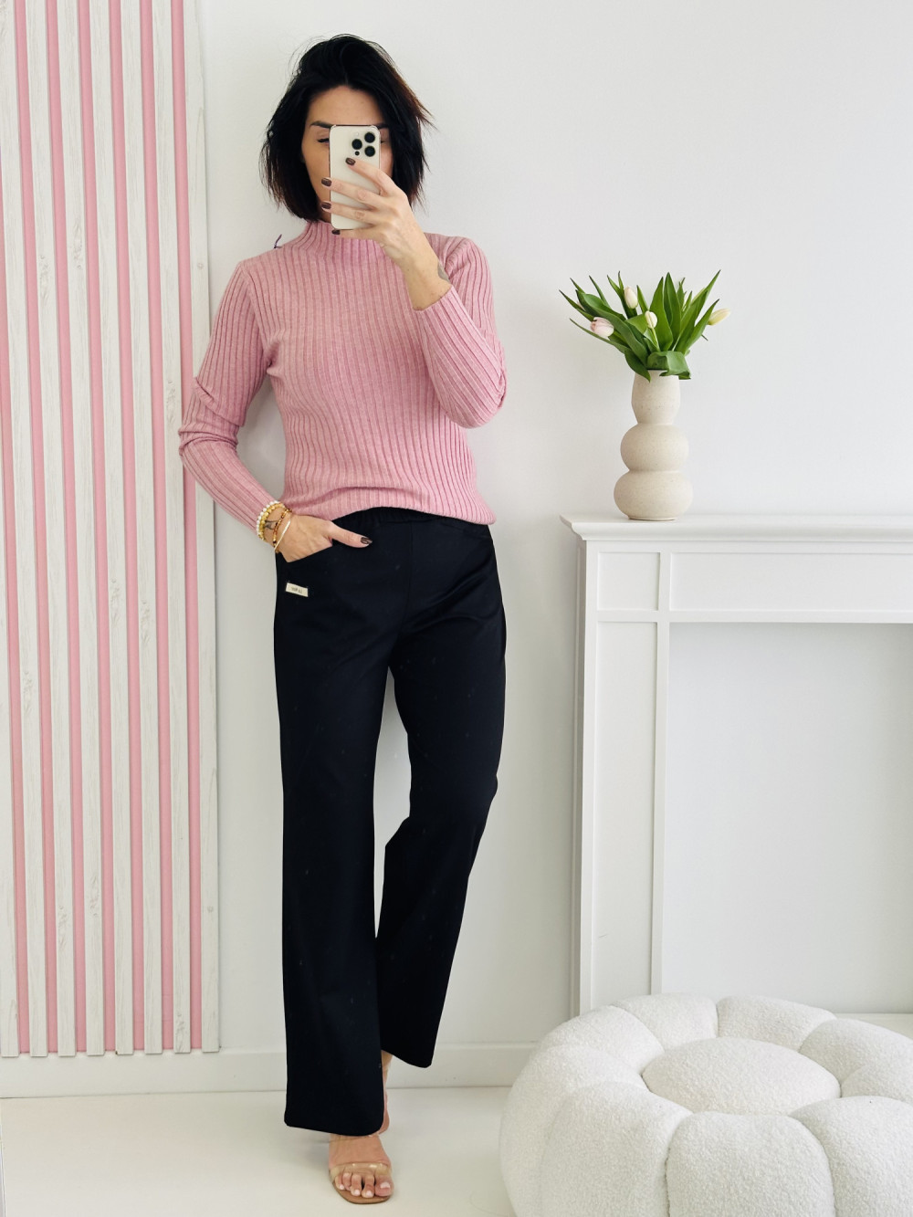 Sweter z długim rękawem i półgolfem to klasyczna i ponadczasowa propozycja na chłodniejsze dni. Miękki, przyjemny w dotyku materiał zapewnia komfort i ciepło, a dopasowany krój subtelnie podkreśla sylwetkę. Uniwersalny design sprawia, że sweter świetnie komponuje się zarówno z jeansami, jak i elegancką spódnicą, tworząc stylowy i szykowny look.