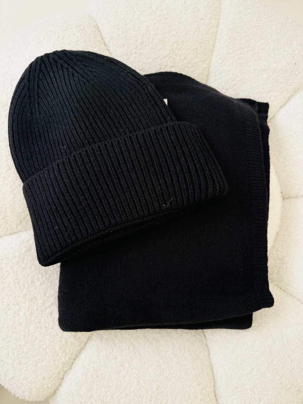 Zestaw składający się z czapki i szalika w tych samych kolorach to stylowa i praktyczna propozycja na chłodniejsze dni. Spójna kolorystyka nadaje całości eleganckiego i harmonijnego charakteru, a miękki, przyjemny w dotyku materiał zapewnia komfort i ciepło. Idealny do casualowych stylizacji, doskonale uzupełnia codzienny look, łącząc funkcjonalność z modnym designem.