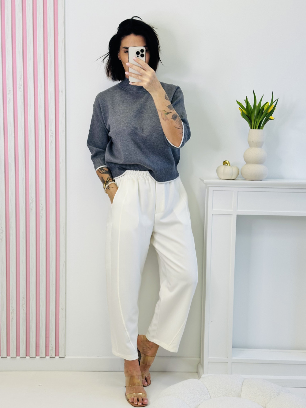 Sweter z półgolfem i rękawem 3/4 to elegancka i kobieca propozycja, idealna na każdą okazję. Wykonany z miękkiego, przyjemnego w dotyku materiału, zapewnia komfort noszenia i prezentuje się niezwykle stylowo zarówno w codziennych, jak i bardziej eleganckich stylizacjach.