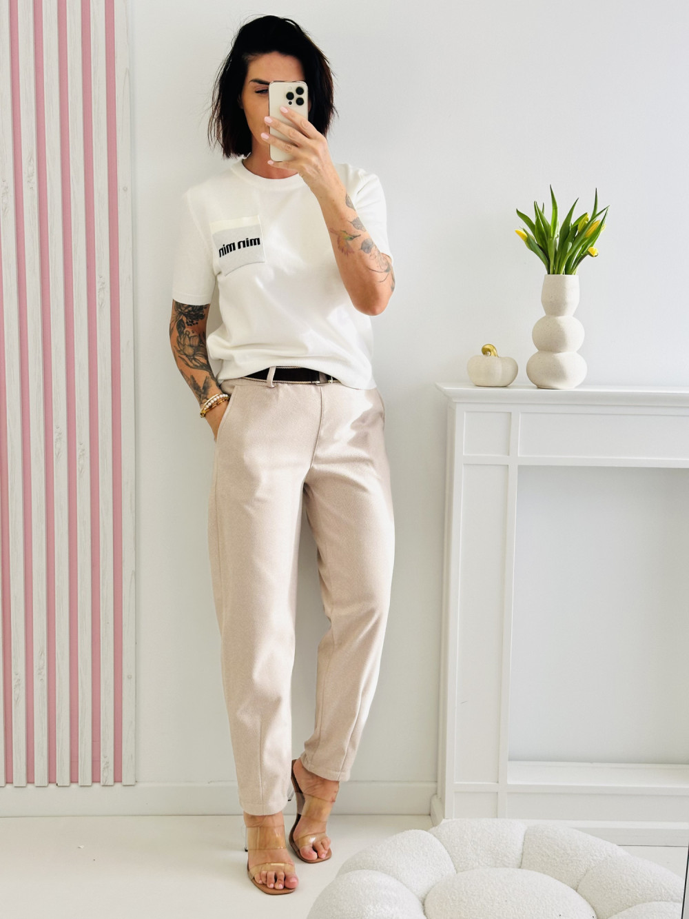 Sweter z krótkim rękawem to stylowa i wygodna propozycja na każdą porę roku. Z przodu znajduje się urocza kieszonka z napisem, która dodaje całości modnego i nowoczesnego charakteru. Wykonany z miękkiego, przyjemnego w dotyku materiału, sweter doskonale sprawdzi się zarówno w codziennych, jak i bardziej eleganckich stylizacjach.