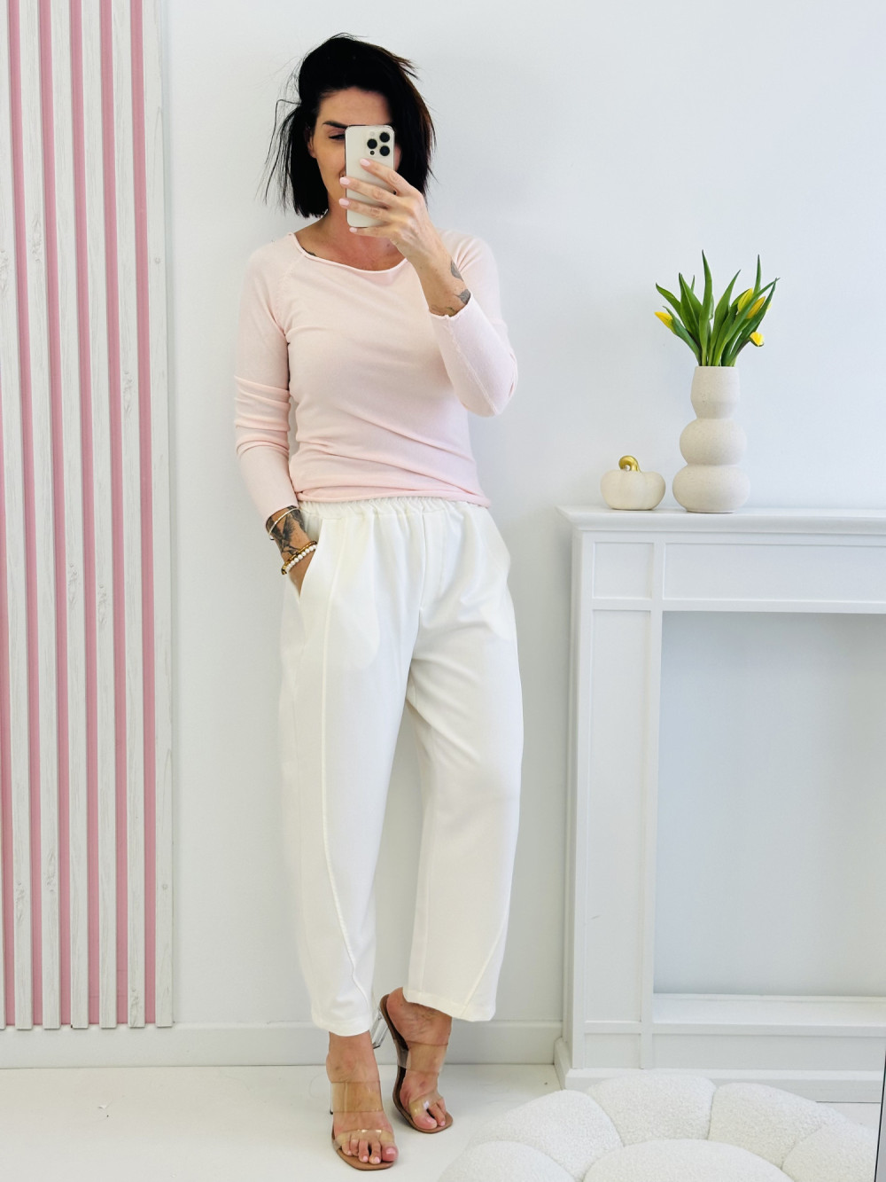 Delikatna, luźna bluzka z długim rękawem to kwintesencja kobiecej elegancji i wygody. Wykonana z miękkiego, przewiewnego materiału, subtelnie układa się na sylwetce, nadając jej lekkości i swobody. Doskonała zarówno do codziennych stylizacji, jak i bardziej eleganckich zestawów.