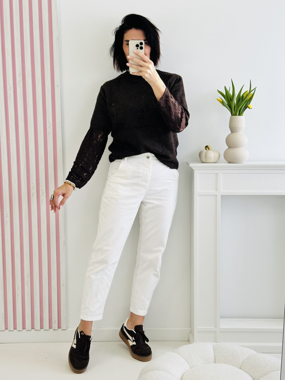 Sweter z krótkim i długim rękawem wykonany z wbudowanego materiału z kwiatowym wzorem to wyjątkowa propozycja łącząca nowoczesny design z subtelną kobiecością. Kwiatowe zdobienia dodają mu lekkości i romantycznego charakteru, przyciągając wzrok w elegancki sposób. Miękki, przyjemny w dotyku materiał zapewnia komfort noszenia, a oryginalny krój sprawia, że sweter świetnie sprawdzi się zarówno w codziennych, jak i bardziej stylowych stylizacjach.
