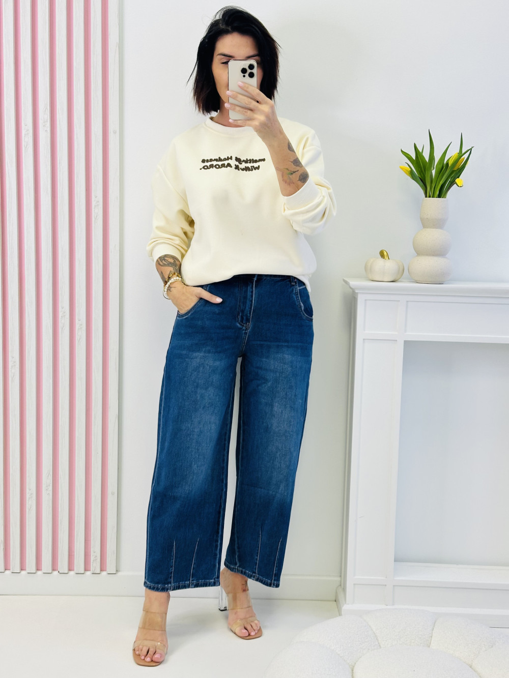 Bluza z długim rękawem to wygodna i stylowa propozycja na co dzień. Z przodu zdobi ją modny napis, który dodaje całości nowoczesnego charakteru i przyciąga wzrok. Wykonana z miękkiego, przyjemnego w dotyku materiału, zapewnia komfort noszenia i doskonale komponuje się z casualowymi stylizacjami.