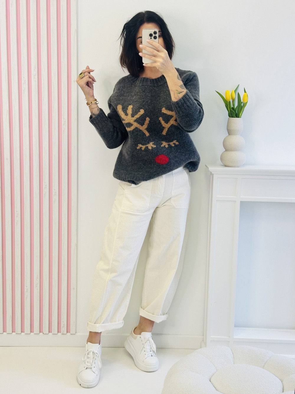 Sweter z długim rękawem i świąteczną aplikacją z przodu to idealny wybór na zimowe i świąteczne dni. Urocza dekoracja dodaje mu radosnego, przytulnego charakteru, wprowadzając świąteczną atmosferę do każdej stylizacji. Wykonany z miękkiego, przyjemnego w dotyku materiału, zapewnia ciepło i komfort noszenia, łącząc wygodę z wyjątkowym urokiem.
