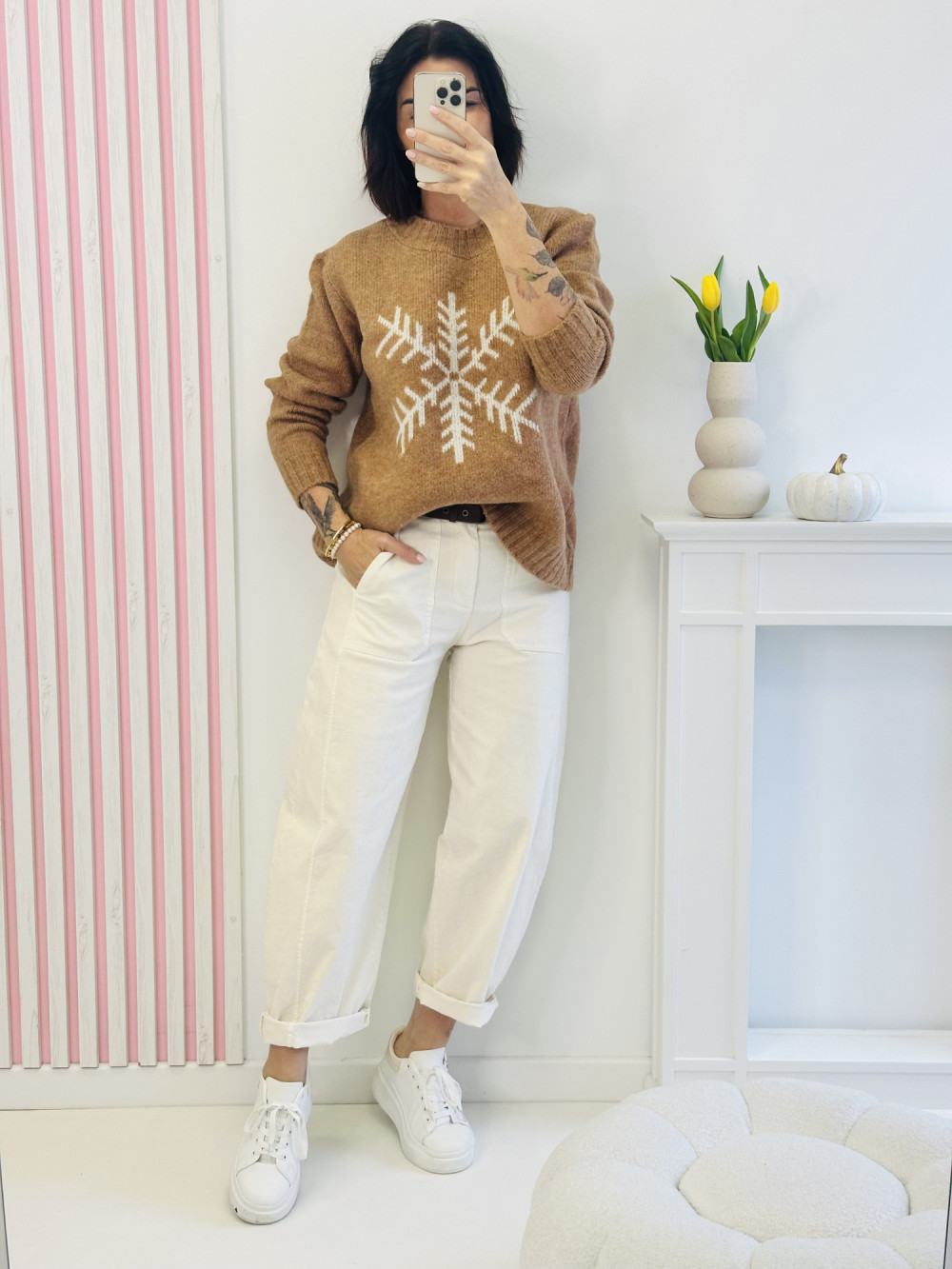 Sweter z długim rękawem i świąteczną aplikacją z przodu to idealny wybór na zimowe i świąteczne dni. Urocza dekoracja dodaje mu radosnego, przytulnego charakteru, wprowadzając świąteczną atmosferę do każdej stylizacji. Wykonany z miękkiego, przyjemnego w dotyku materiału, zapewnia ciepło i komfort noszenia, łącząc wygodę z wyjątkowym urokiem.