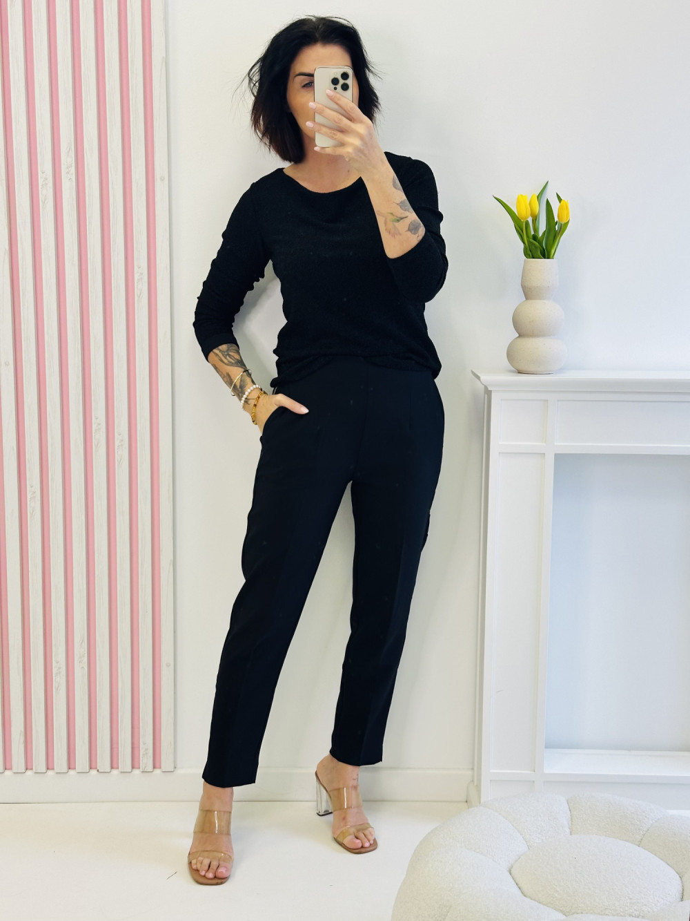 Bluzka z długim rękawem o subtelnym, błyszczącym wykończeniu to doskonały wybór dla tych, którzy pragną dodać stylizacji odrobinę blasku. Wykonana z lekkiego, komfortowego materiału, pięknie odbija światło, tworząc elegancki efekt. Idealna na wieczorne wyjścia, spotkania towarzyskie czy wyjątkowe okazje, gdy chcesz olśniewać i czuć się wyjątkowo.