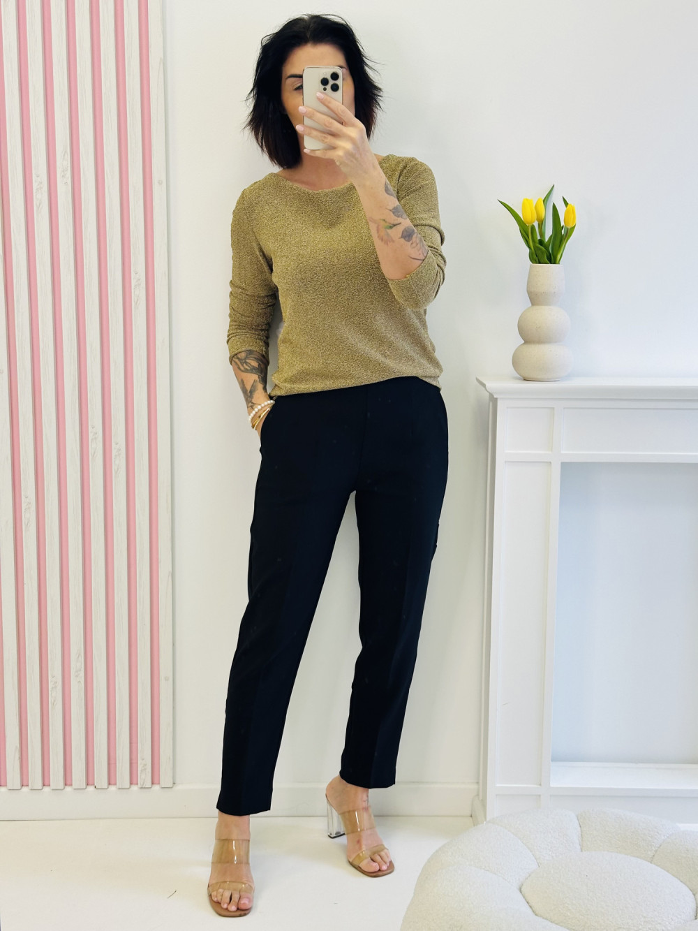 Bluzka z długim rękawem o subtelnym, błyszczącym wykończeniu to doskonały wybór dla tych, którzy pragną dodać stylizacji odrobinę blasku. Wykonana z lekkiego, komfortowego materiału, pięknie odbija światło, tworząc elegancki efekt. Idealna na wieczorne wyjścia, spotkania towarzyskie czy wyjątkowe okazje, gdy chcesz olśniewać i czuć się wyjątkowo.