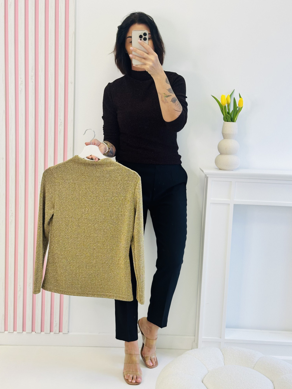 Błyszcząca bluzka z długim rękawem to propozycja, która dodaje stylizacji wyjątkowego charakteru i elegancji. Wykonana z delikatnie połyskującego materiału, pięknie odbija światło, tworząc subtelny, efektowny blask. Idealna na wieczorne wyjścia lub specjalne okazje, kiedy chcesz wyglądać zjawiskowo i przyciągać spojrzenia.