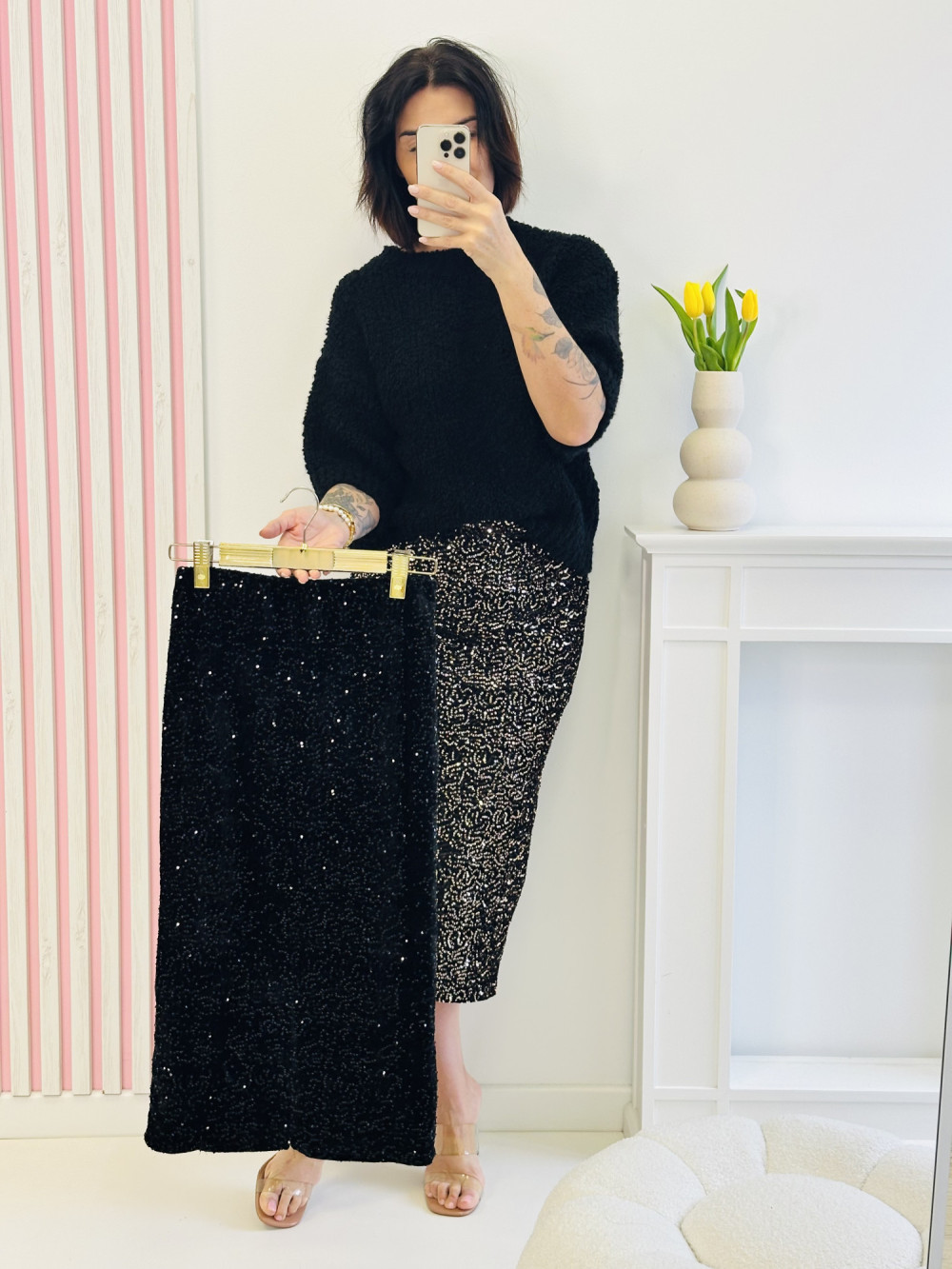 Spódnica z podszewką, gumką w pasie i cekinami to wyjątkowo efektowna propozycja, która łączy wygodę z elegancją. Gumka w talii zapewnia idealne dopasowanie, a subtelny blask cekinów dodaje całości szykownego charakteru. Lekka podszewka gwarantuje komfort noszenia, sprawiając, że spódnica doskonale sprawdzi się zarówno na wieczorne wyjścia, jak i wyjątkowe okazje.