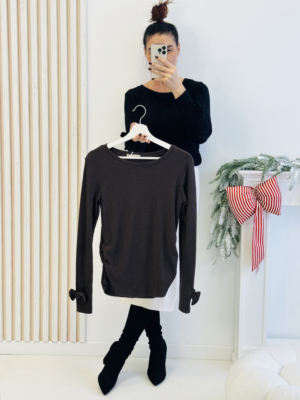 Błyszcząca bluzka z długim rękawem to wyjątkowa propozycja dla kobiet, które kochają subtelny blask i elegancję. Jej urocze kokardki umieszczone na rękawach dodają całości dziewczęcego wdzięku i stylowego wykończenia. Idealna na specjalne okazje, wieczorne wyjścia lub stylowe codzienne stylizacje, pięknie podkreśli charakter każdej kreacji.