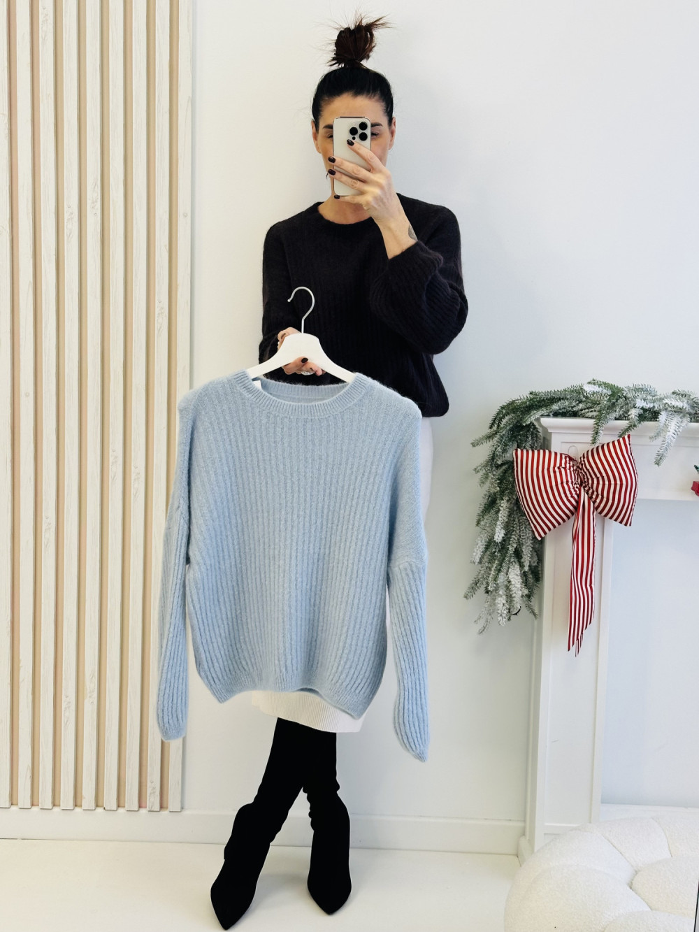 Miękki sweter z długimi rękawami to stylowa propozycja, która łączy komfort i elegancję w codziennym wydaniu. Rękawy luźniejsze przy dłoniach tworzą efektowną bombkę, dodając całości wyjątkowego, modnego charakteru. Delikatny materiał przyjemnie otula sylwetkę, sprawiając, że sweter doskonale sprawdzi się zarówno na co dzień, jak i w bardziej stylowych zestawieniach.