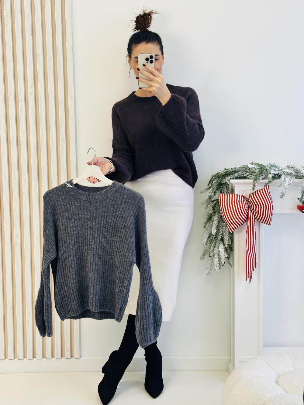 Miękki sweter z długimi rękawami to stylowa propozycja, która łączy komfort i elegancję w codziennym wydaniu. Rękawy luźniejsze przy dłoniach tworzą efektowną bombkę, dodając całości wyjątkowego, modnego charakteru. Delikatny materiał przyjemnie otula sylwetkę, sprawiając, że sweter doskonale sprawdzi się zarówno na co dzień, jak i w bardziej stylowych zestawieniach.