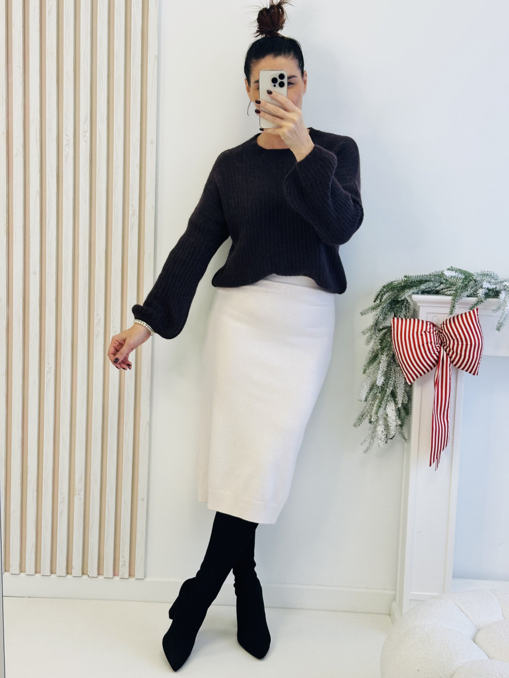 Miękki sweter z długimi rękawami to stylowa propozycja, która łączy komfort i elegancję w codziennym wydaniu. Rękawy luźniejsze przy dłoniach tworzą efektowną bombkę, dodając całości wyjątkowego, modnego charakteru. Delikatny materiał przyjemnie otula sylwetkę, sprawiając, że sweter doskonale sprawdzi się zarówno na co dzień, jak i w bardziej stylowych zestawieniach.
