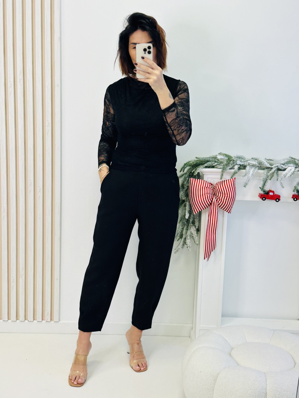 Czarna bluzka z długim rękawem to eleganczna i ponadczasowa propozycja, która doskonale sprawdzi się na każdą okazję. Delikatny materiał został wzbogacony o subtelną podszewkę, dzięki czemu bluzka pięknie układa się na sylwetce i zapewnia pełen komfort noszenia. Klasyczny krój podkreśla jej uniwersalny charakter, czyniąc ją idealnym wyborem zarówno do stylizacji codziennych, jak i bardziej eleganckich.