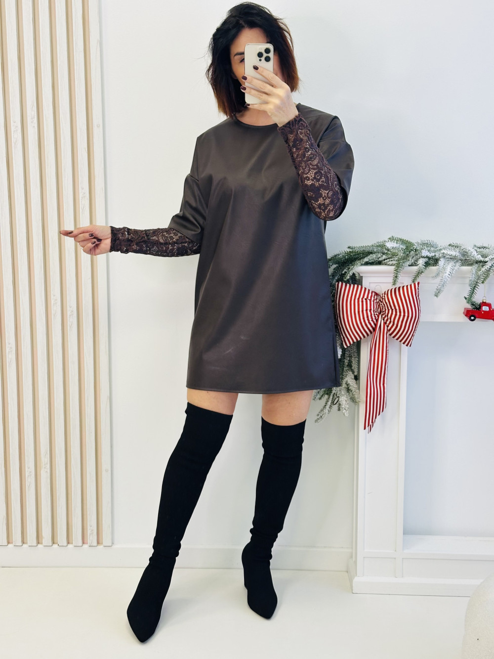 Brązowa sukienka z długim rękawem to elegancka i uniwersalna propozycja na wiele okazji. Lekki materiał i klasyczny krój sprawiają, że sukienka doskonale komponuje się zarówno z codziennymi, jak i bardziej eleganckimi zestawami.