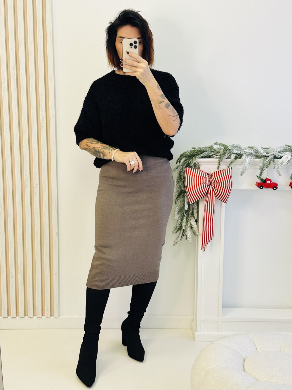 Spódnica midi z gumką w pasie to połączenie wygody i subtelnej elegancji. Elastyczna talia zapewnia idealne dopasowanie i komfort noszenia, a klasyczna długość midi podkreśla kobiecą sylwetkę. Lekki materiał sprawia, że spódnica pięknie układa się w ruchu, doskonale sprawdzając się zarówno w codziennych, jak i bardziej eleganckich stylizacjach.