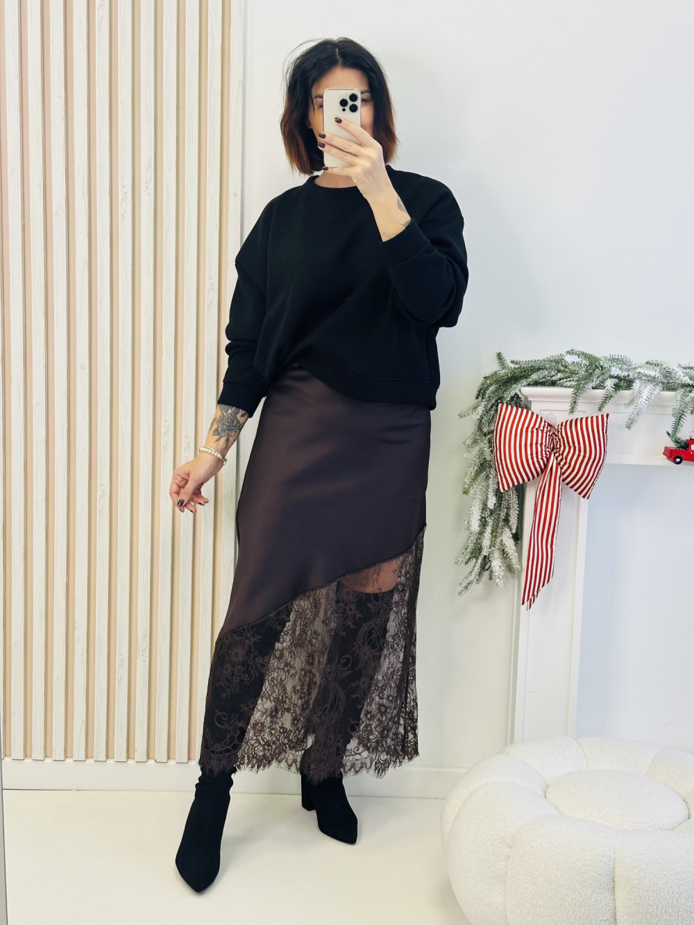 Spódnica z gumką w pasie i siateczkowym dołem to idealne połączenie wygody i delikatnej elegancji. Elastyczna talia zapewnia komfort noszenia, a lekka, przewiewna siateczka dodaje zwiewności i subtelnego uroku. Fason spódnicy sprawia, że świetnie sprawdzi się zarówno w codziennych, jak i bardziej stylowych, wieczorowych stylizacjach.