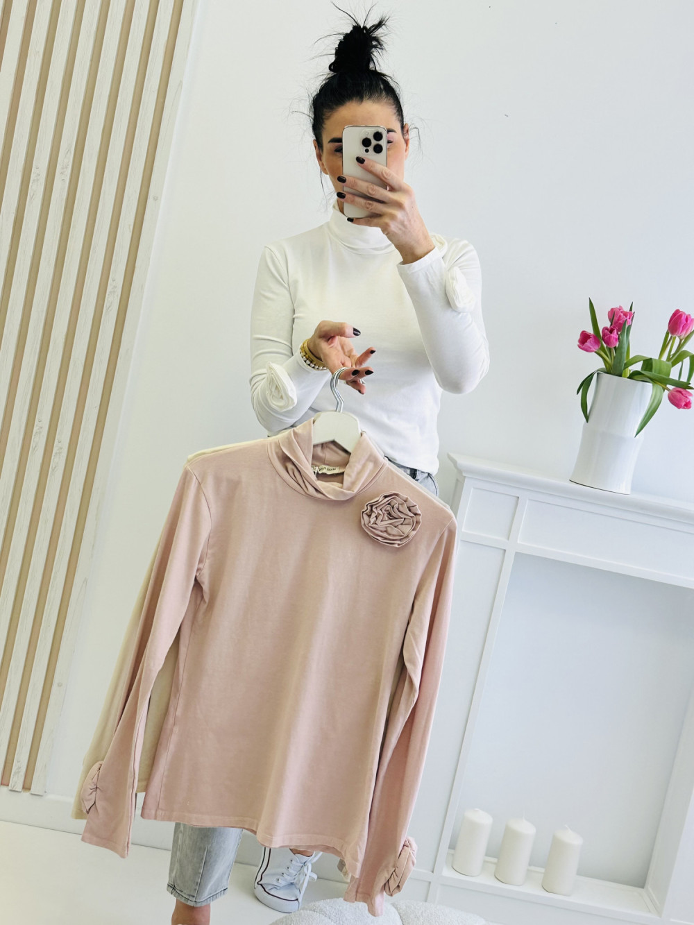Bluzka z długim rękawem i elegancką stójką to wyjątkowa propozycja dla kobiet ceniących styl i detale. Ozdobiona przyczepioną broszką w kształcie kwiatu, dodaje całości subtelnej elegancji i kobiecego uroku. To doskonały wybór zarówno do eleganckich stylizacji, jak i bardziej szykownych zestawów na co dzień.
