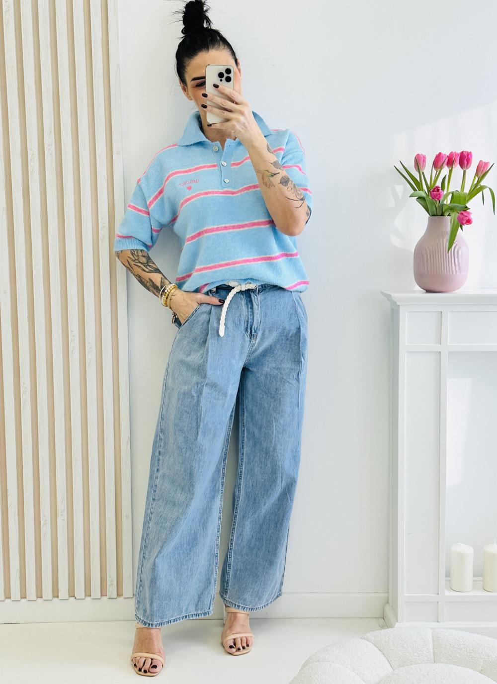 Sweter w paski z krótkim rękawem i kołnierzykiem to ponadczasowa propozycja, która doskonale wpisuje się w modę codzienną i elegancką. Klasyczny wzór w paski nadaje mu lekkości i świeżości, a kołnierzyk dodaje całości stylowego, schludnego charakteru. Idealny do noszenia solo lub pod marynarkę – świetnie sprawdzi się zarówno w pracy, jak i w casualowych stylizacjach.