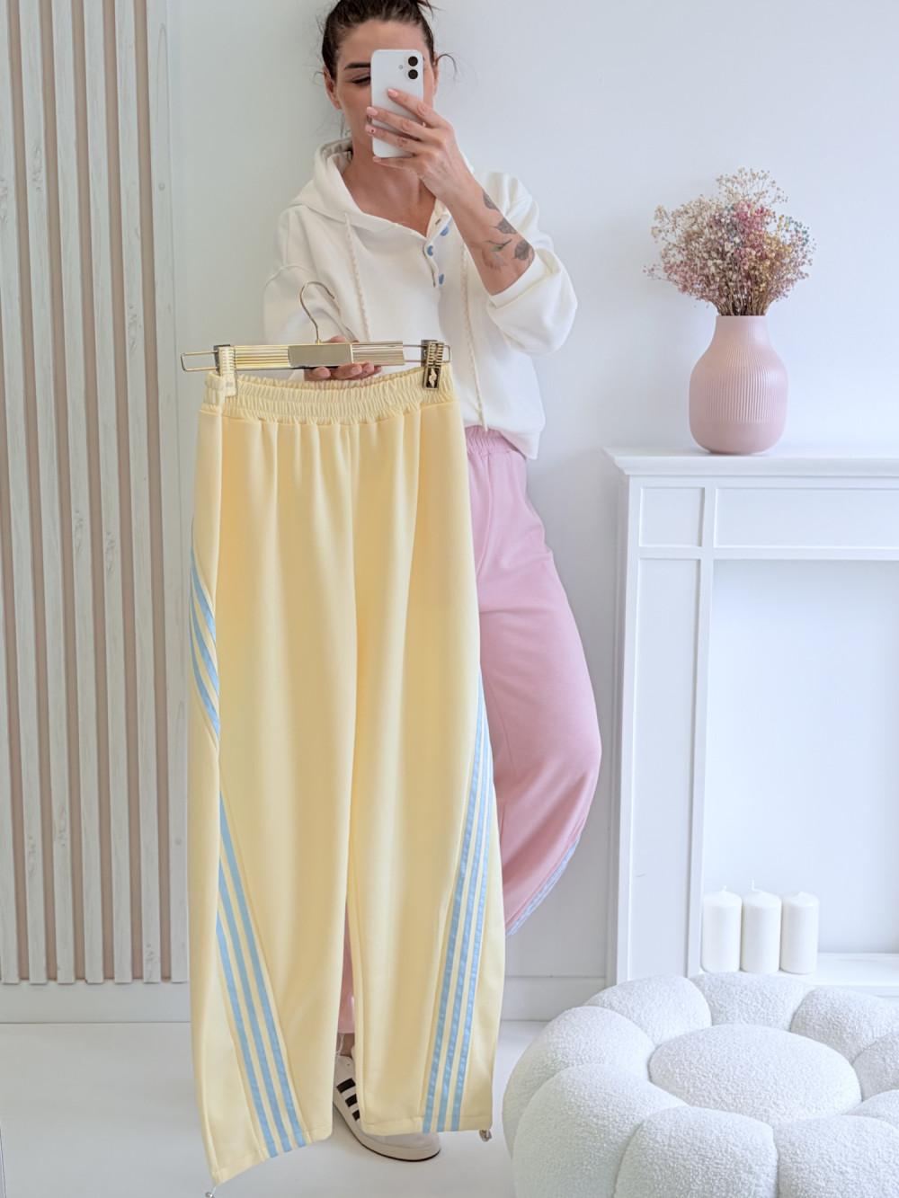 Spodnie z gumką w pasie to wygodna i stylowa propozycja na co dzień. Model z praktycznymi kieszeniami, modnymi lampasami oraz gumką przy zakończeniach nogawek łączy sportowy charakter z nowoczesnym designem. Komfortowy fason i staranne wykończenie sprawiają, że spodnie doskonale sprawdzą się zarówno w codziennych, jak i casualowych stylizacjach.