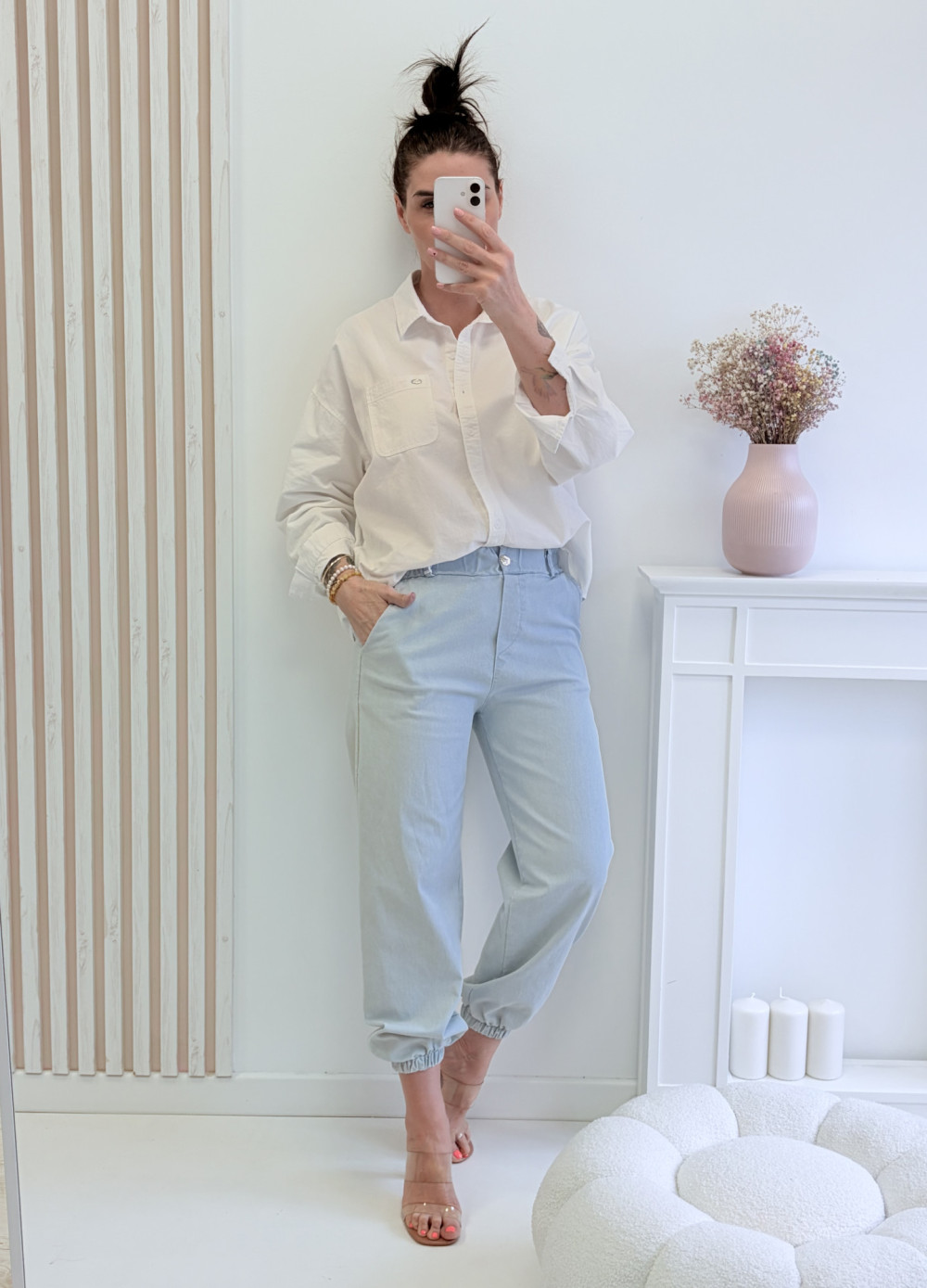 Niebieskie spodnie jeansowe o kroju oversize to modna i wygodna propozycja na co dzień. Elastyczna gumka w pasie zapewnia komfort i swobodę ruchów, a praktyczne kieszenie dodają funkcjonalności. Luźny fason nadaje stylizacji nowoczesnego, nonszalanckiego charakteru i doskonale wpisuje się w casualowe trendy.